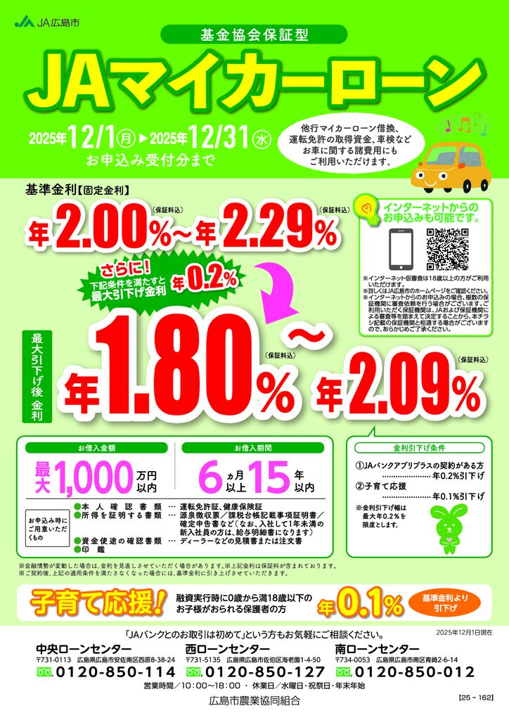 JAマイカーローン(三菱UFJニコス(株)保証)