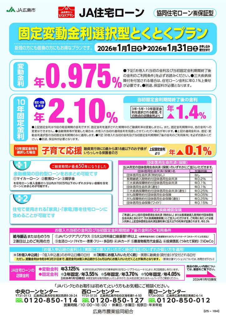 協同住宅ローン(株)保証型 固定変動金利選択型とくとくプラン