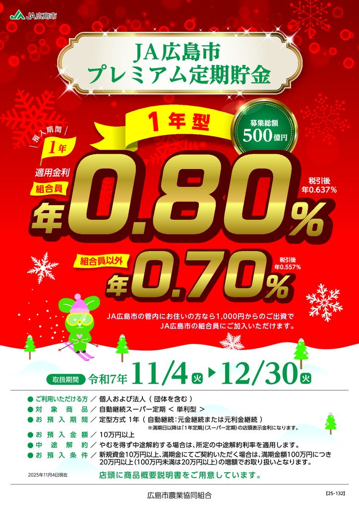 JA広島市プレミアム定期貯金<1年型>の発売のお知らせ!