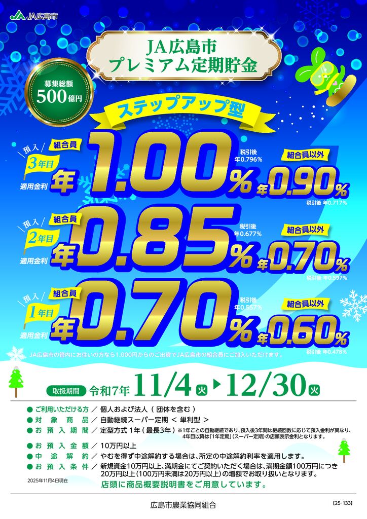 JA広島市プレミアム定期貯金<ステップアップ型>の発売のお知らせ!