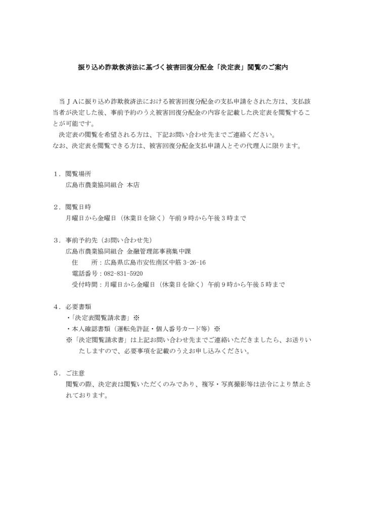 振り込め詐欺救済法に基づく被害回復分配金「決定表」閲覧のご案内