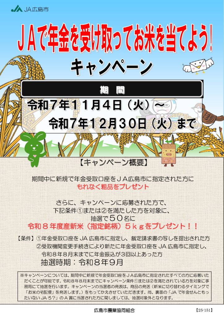 JAで年金を受け取ってお米を当てよう!キャンペーン