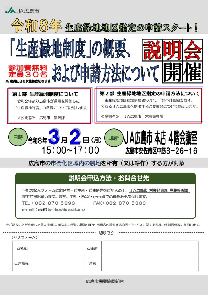 「生産緑地制度」の概要および申請方法について説明会開催