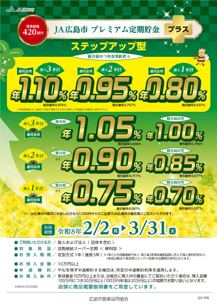 JA広島市プレミアム定期貯金プラス<ステップアップ型>の発売のお知らせ!
