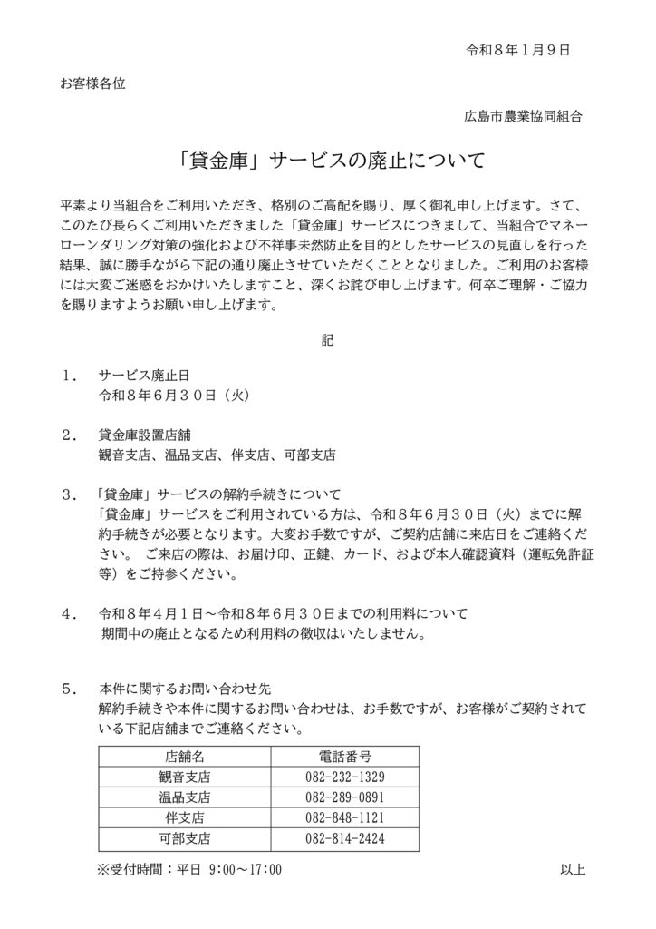 「貸金庫」サービスの廃止について