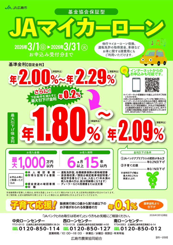 JAマイカーローン(基金協会保証)