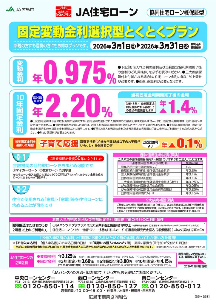 協同住宅ローン(株)保証型 固定変動金利選択型とくとくプラン
