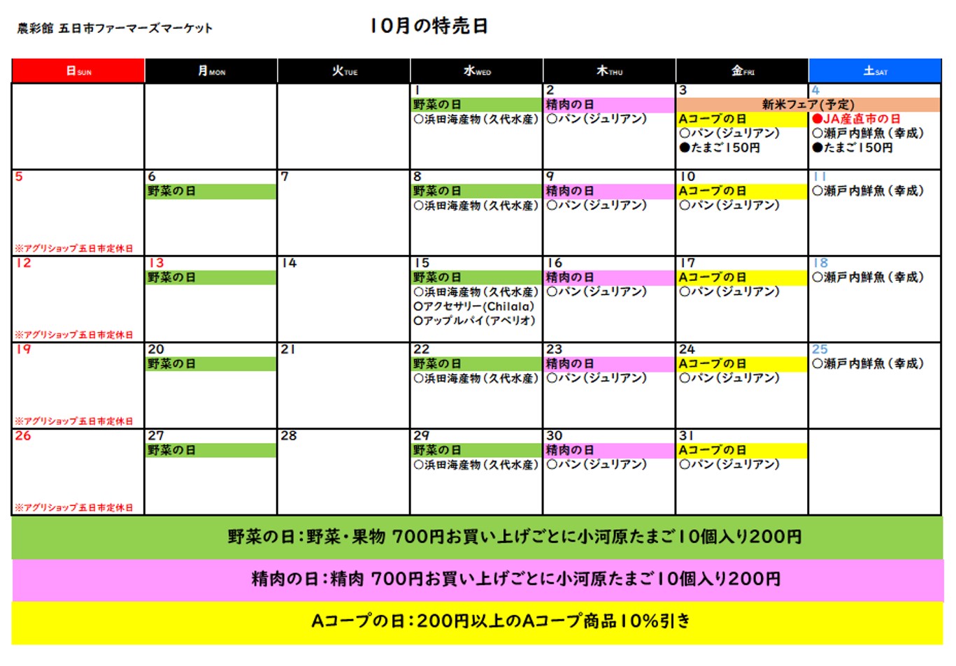農彩館 五日市ファーマーズマーケット 10月イベントスケジュール